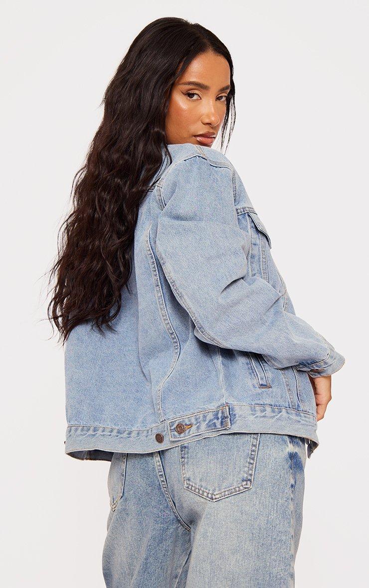 Long Sleeved Boxy Oversized Jacket In Washed Blue Denim