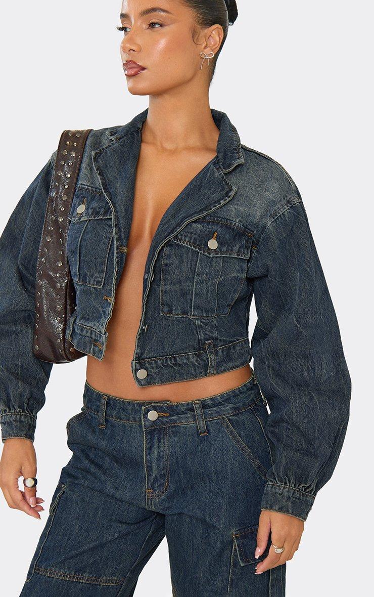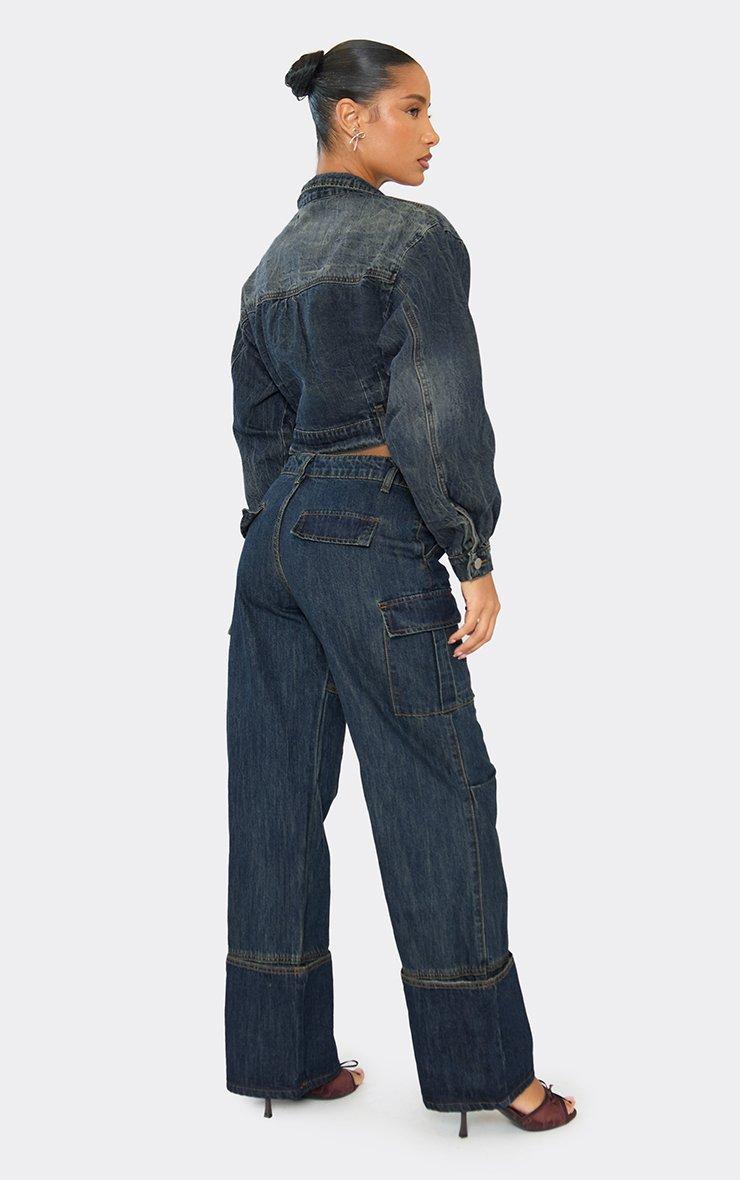 Panel Detail Tapered Jeans In Dark Washed Blue Denim