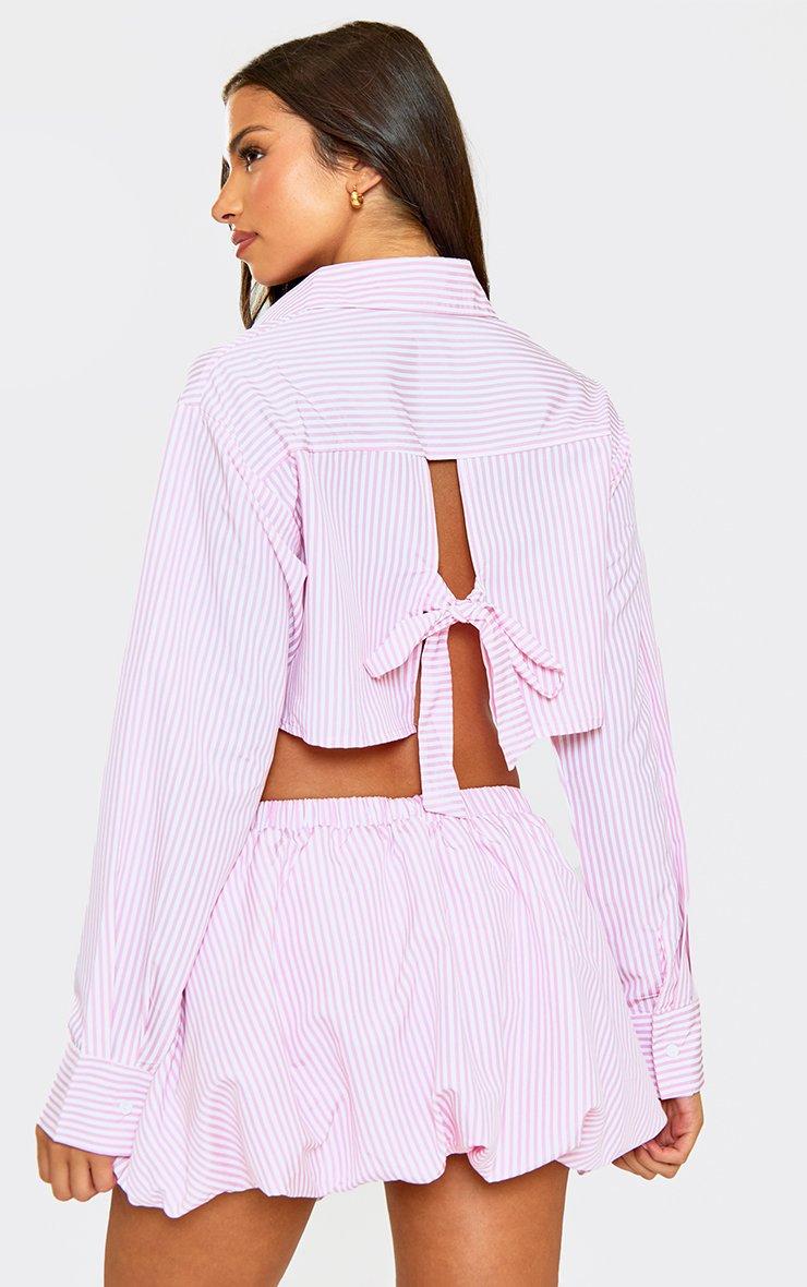 Long Sleeve Open Tie Back Detail Cropped Shirt In Pink Stripe