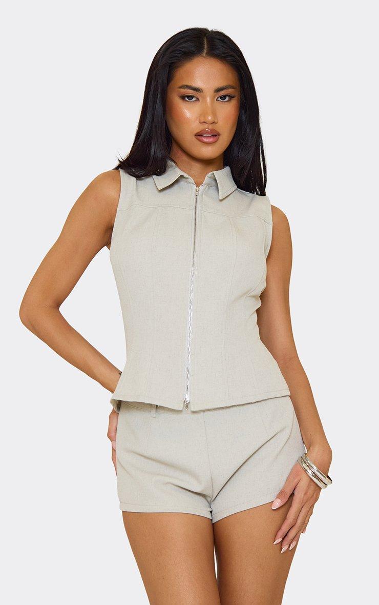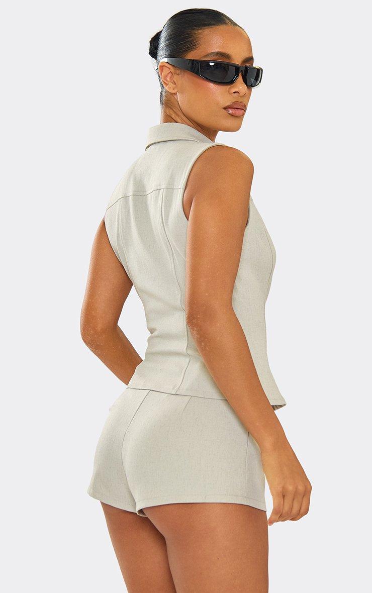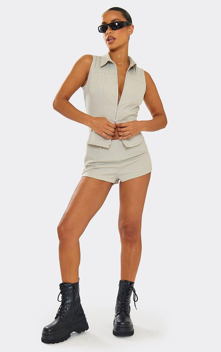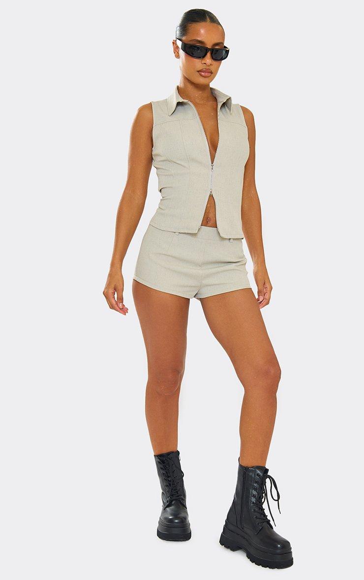 Mid Rise Belt Loop Detail Fitted Hot Pants In Stone