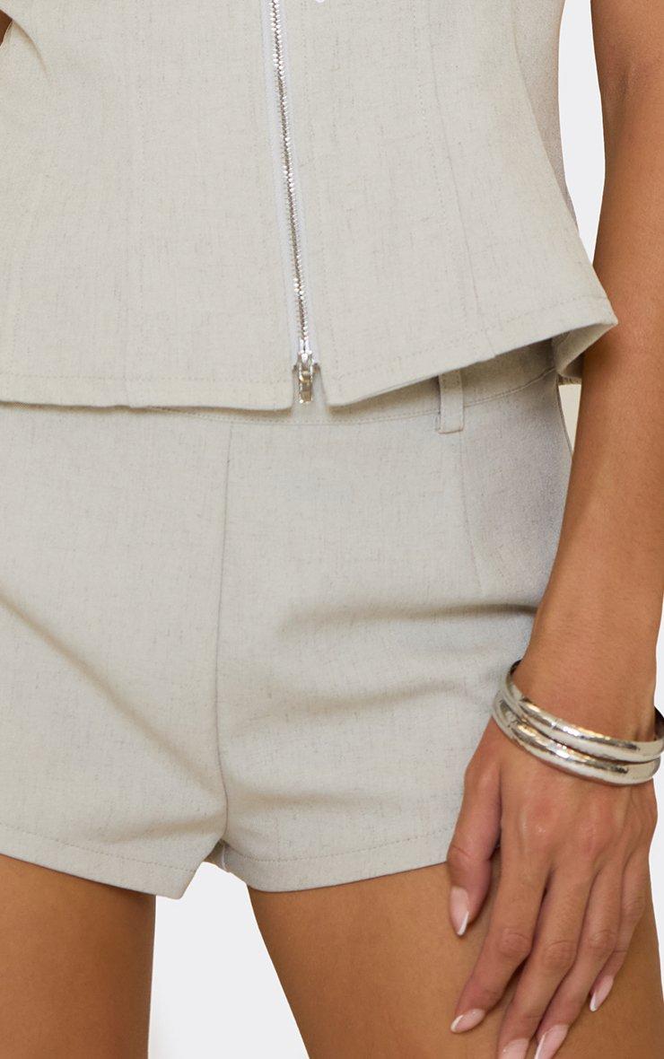Mid Rise Hot Pants In Stone Linen