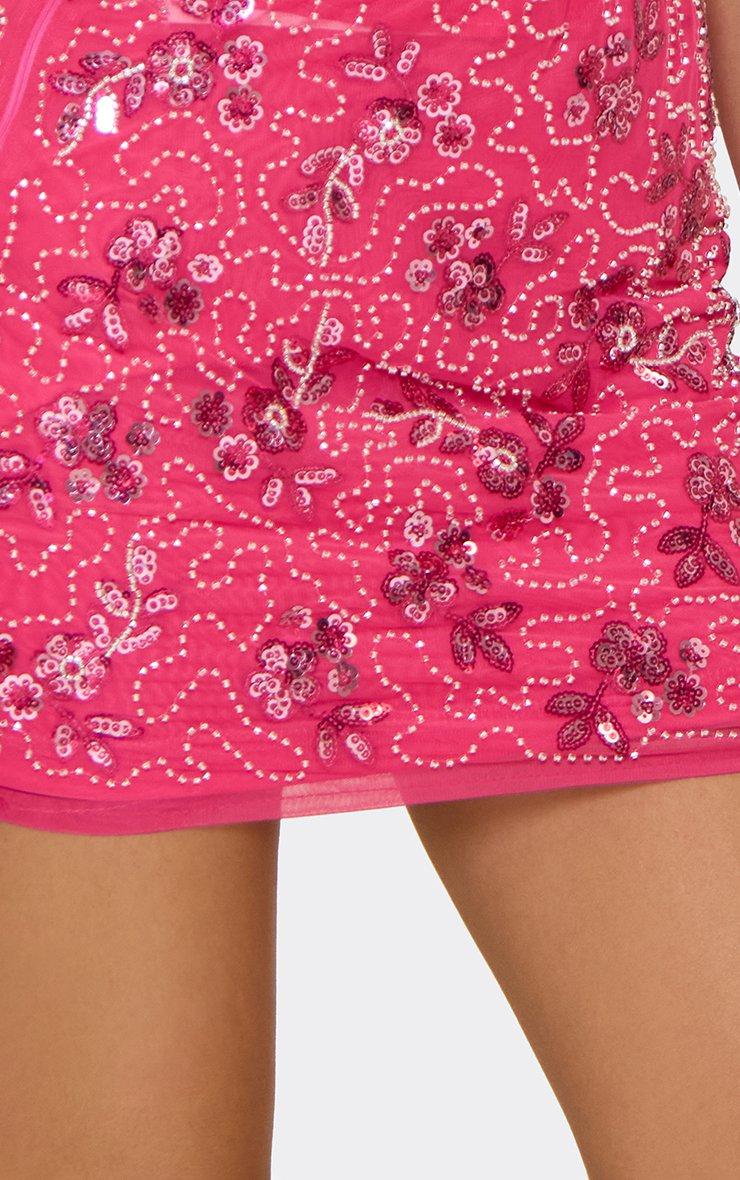 Mid Rise Floral Mini Dress In Pink Floral Sequin