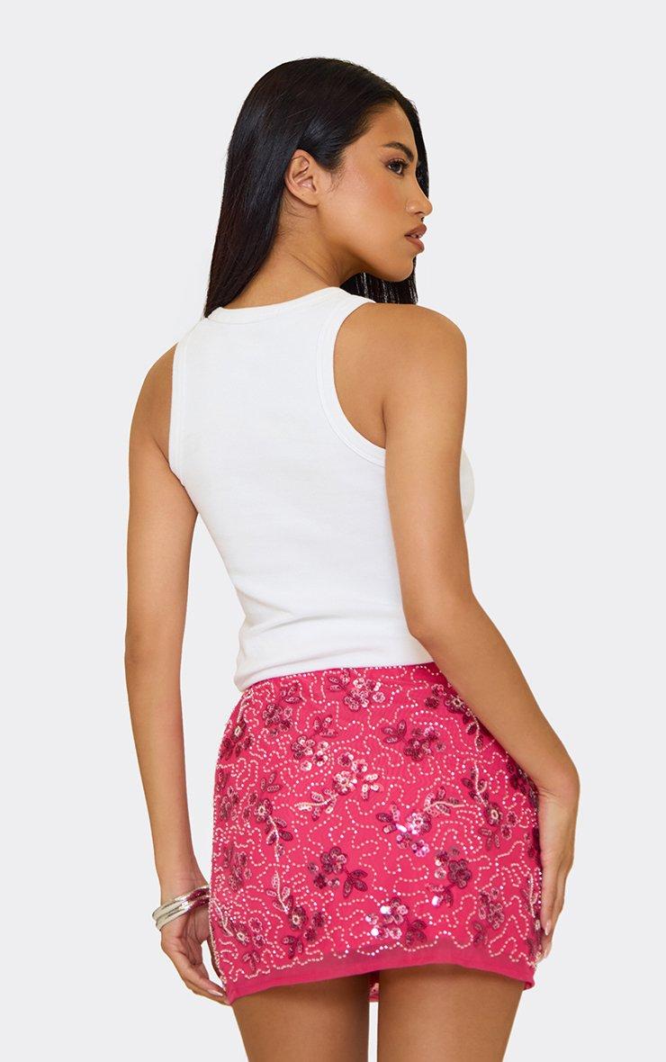 Mid Rise Floral Embellished Mini Skirt In Light Pink Sequin