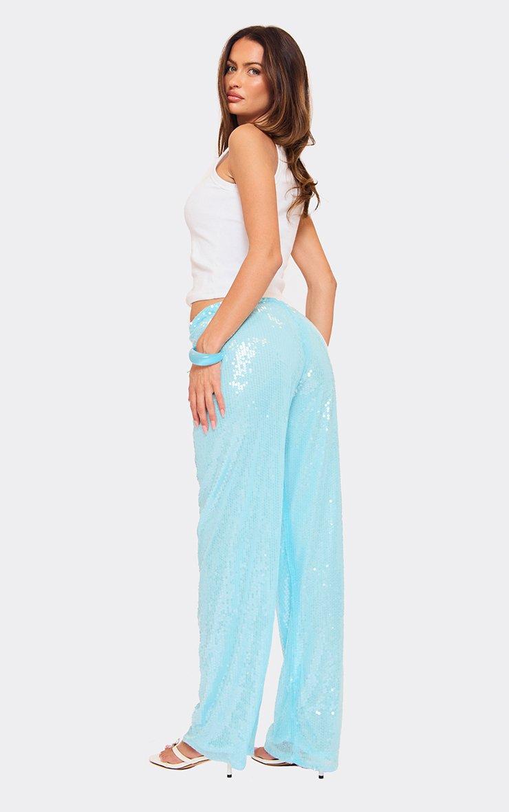 Low Rise Pintuck Detail Wide Leg Joggers In Navy Blue