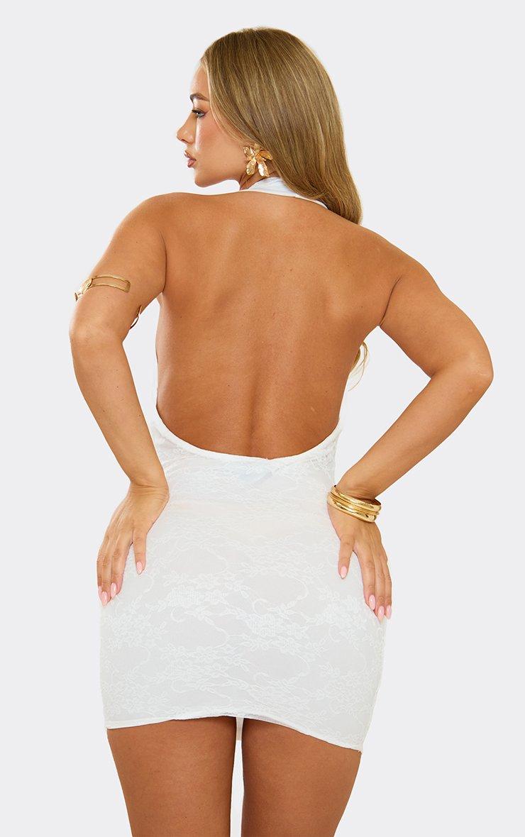 Halterneck Strap Ruched Mini Dress In White Lace