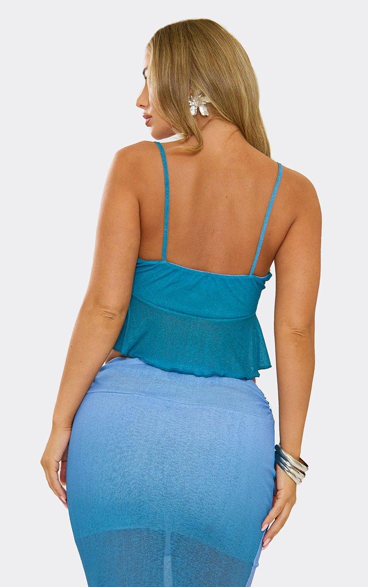 Strappy Frill Hem Shell Trim Detail Crop Top In Blue