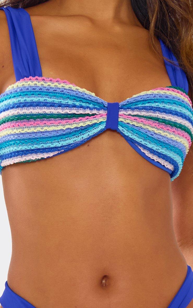 Square Neck Ruched Bikini Set In Blue Stripe Textured