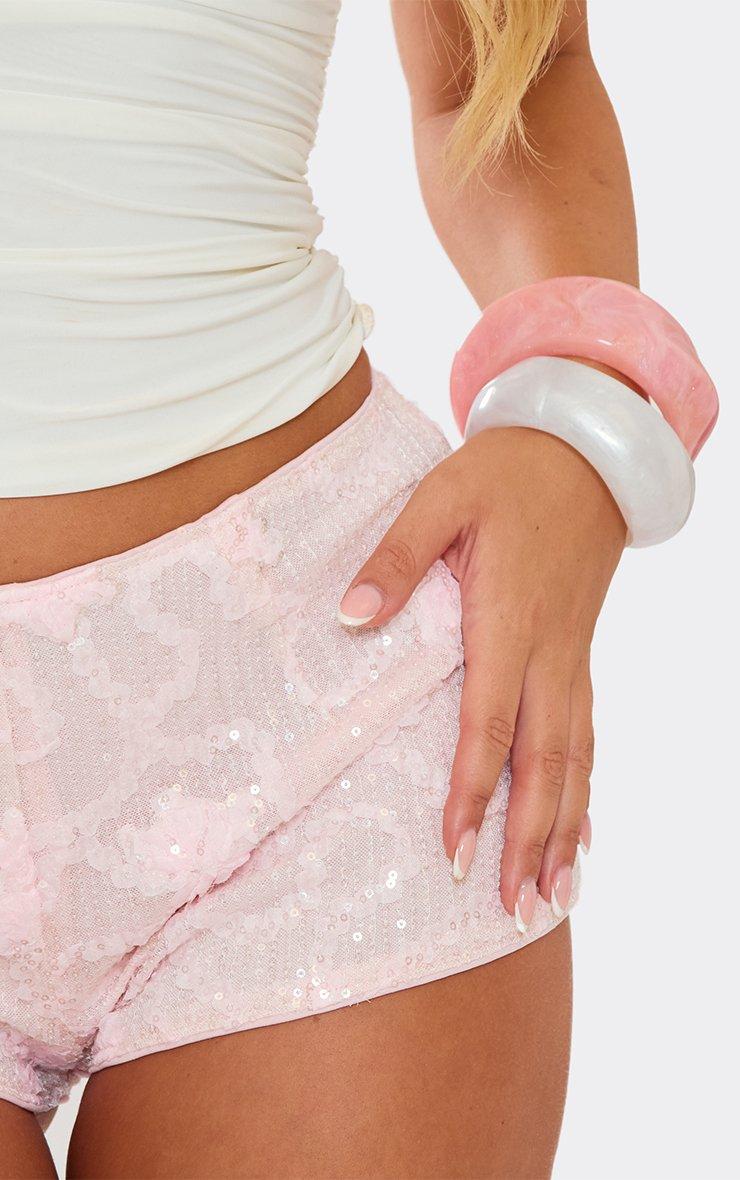 Low Waist Mini Shorts In Baby Pink Floral Print Sequin