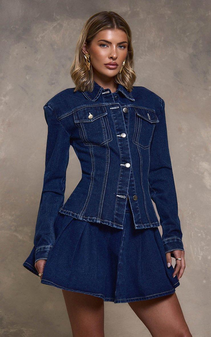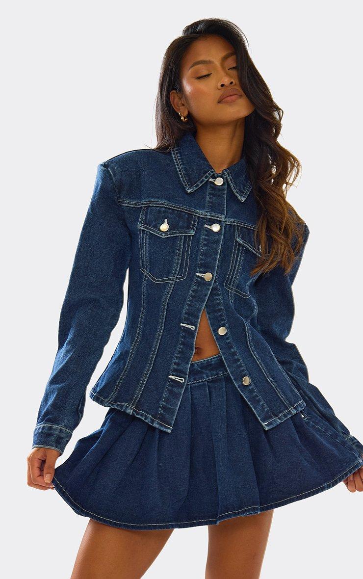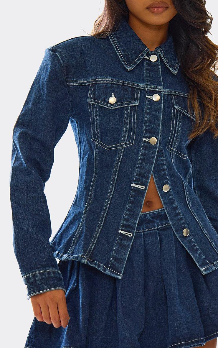 Long Sleeve Button Detail Jacket In Indigo Blue Denim
