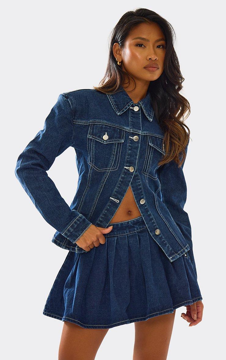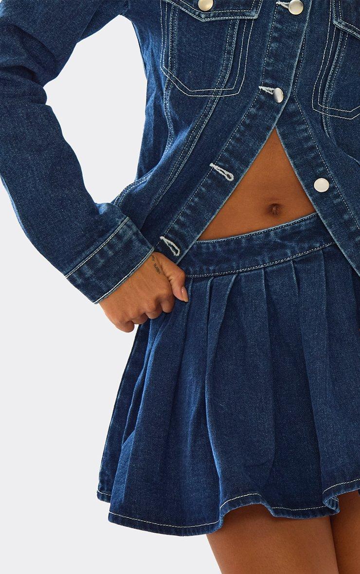 Long Sleeve Button Up Cropped Jacket In Indigo Blue Denim