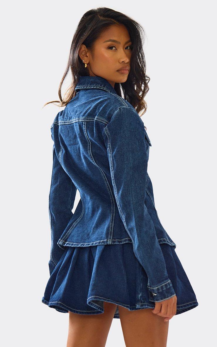 Oversized Sleeve Cinched Waist Jacket In Indigo Blue Denim