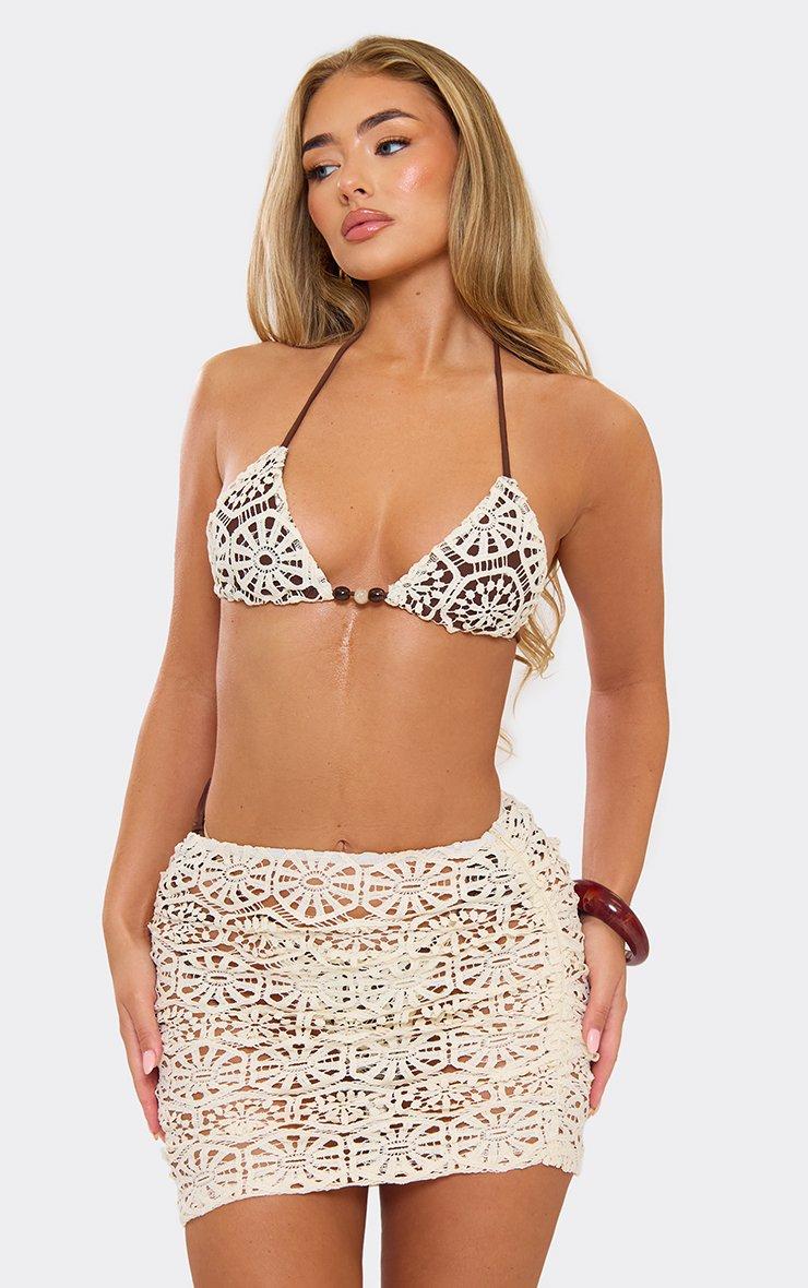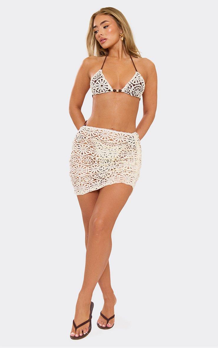Mid Rise Beach Mini Skirt In Cream Crochet