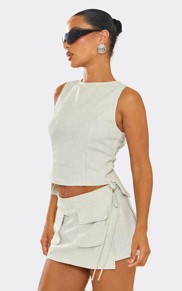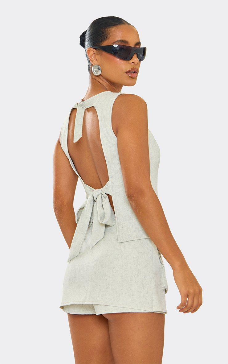 Sleeveless Tie Back Detail Fitted Top In Stone