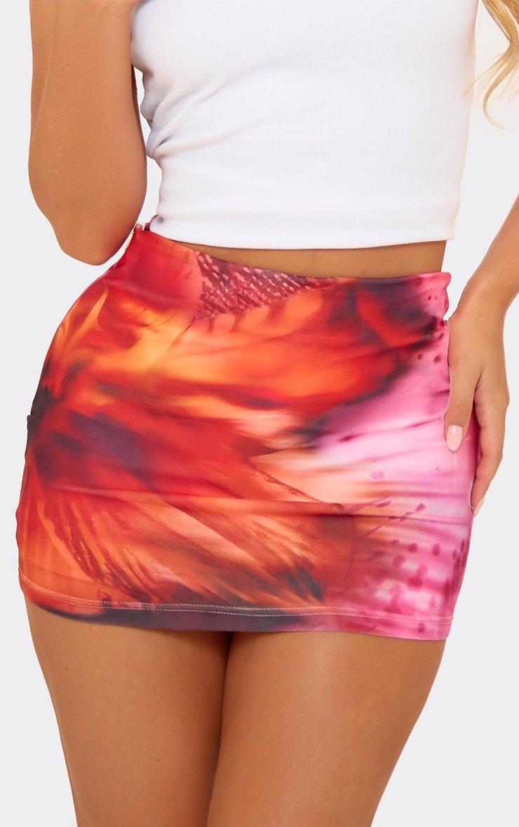 High Waisted Mini Skirt In Pink Floral Print