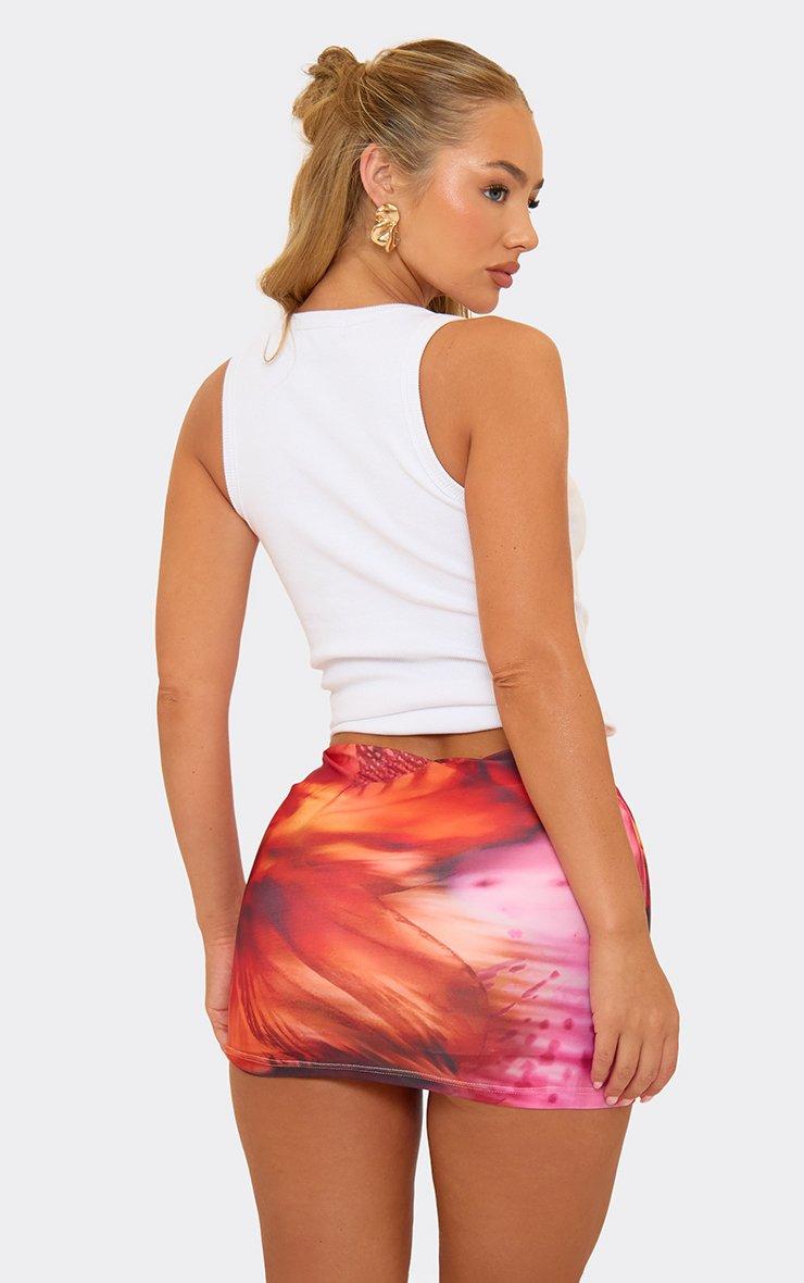 Mid Rise Ruffle Detail Draped Back Mini Skirt In Pink Floral Print