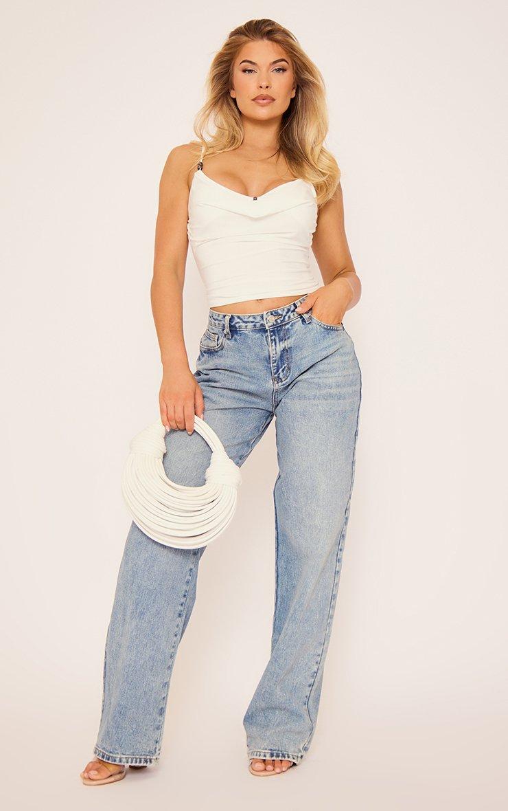 Strappy Cowl Beaded Detail Top In White Slinky