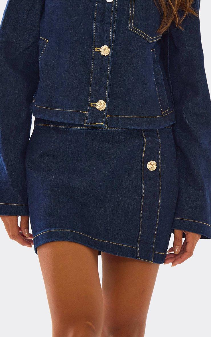Mid Rise Button Detail Mini Skirt In Indigo Blue Denim