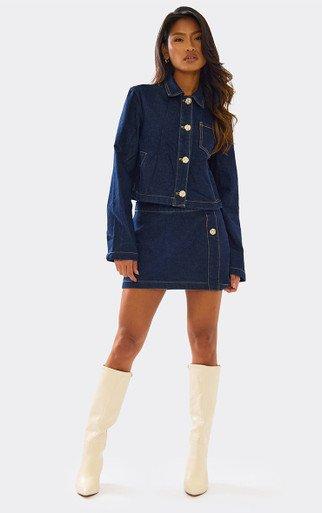 Mid Rise Mini Skirt In Dark Washed Blue Denim