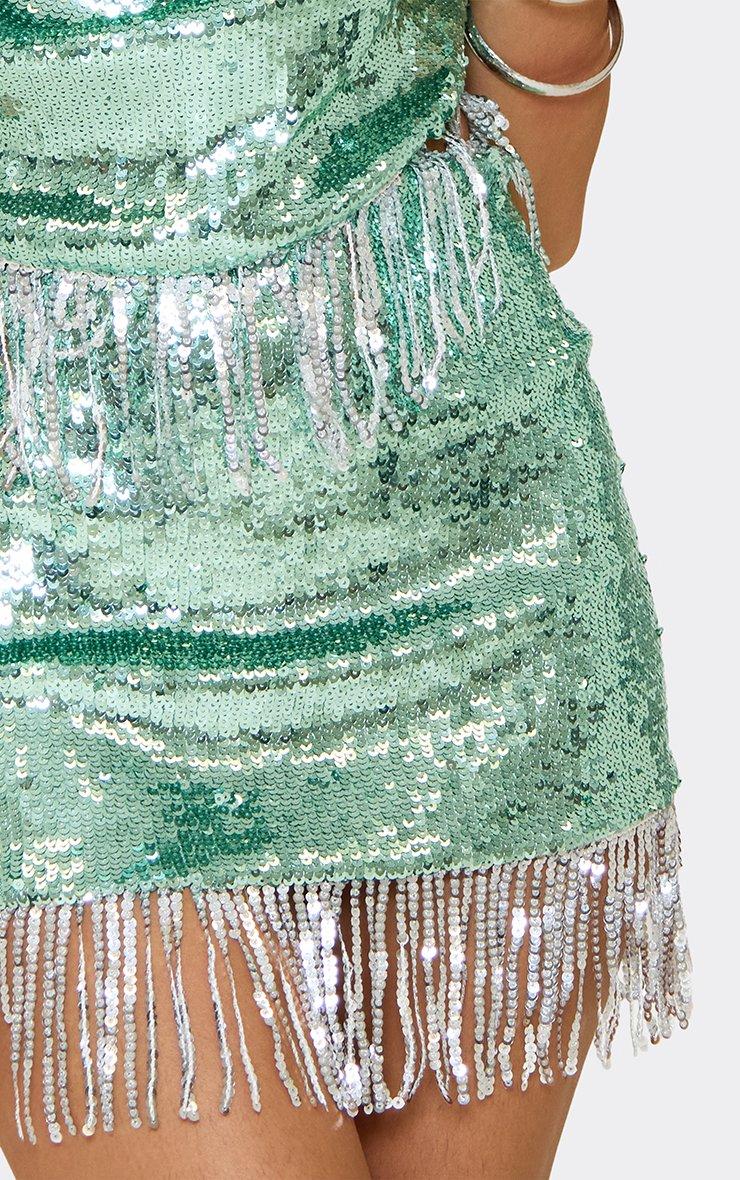 mid rise bead trim detail mini skirt in green metallic sequin
