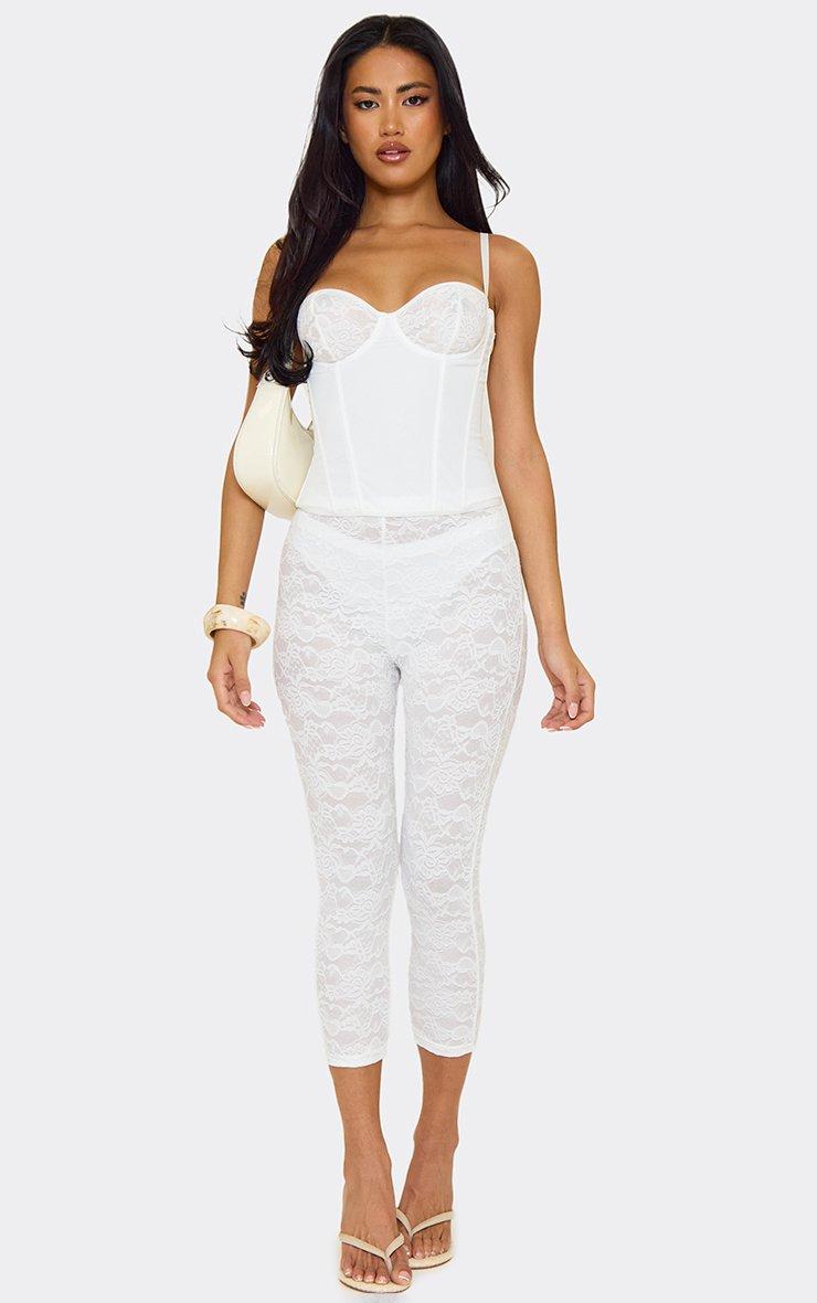 Strappy Lace Cup Detail Corset Top In White Satin