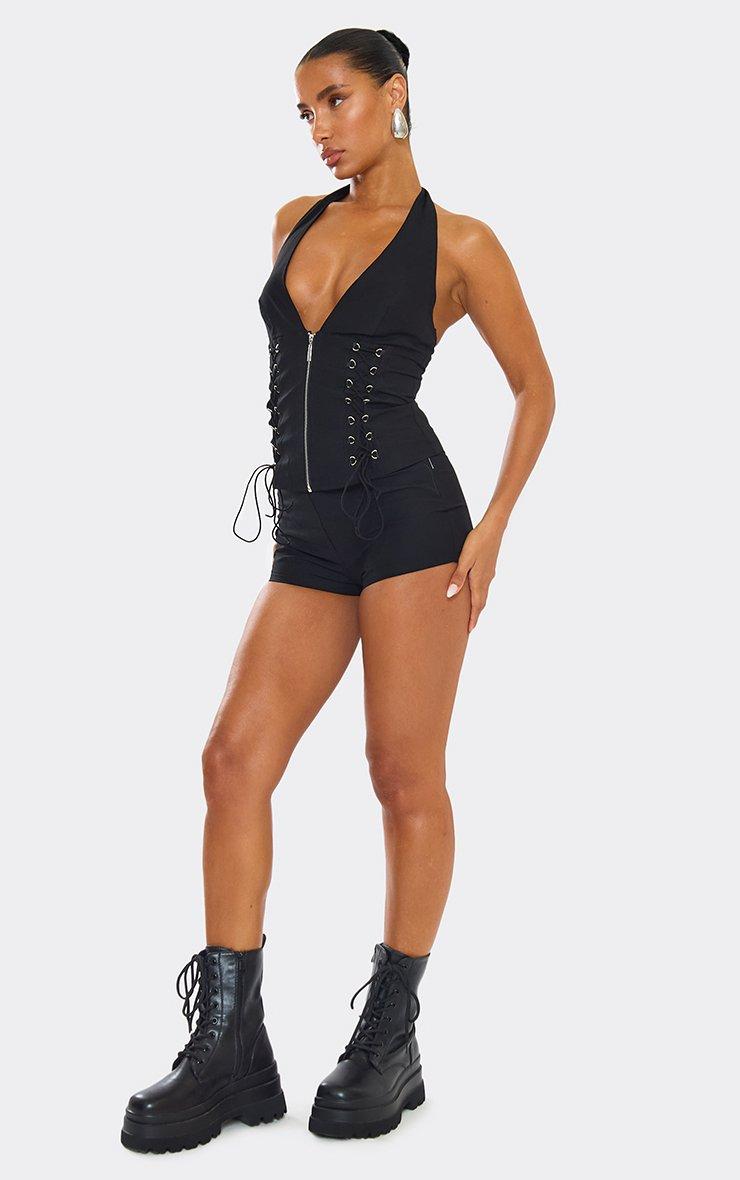 Low Rise Fitted Detail Hot Pants In Black