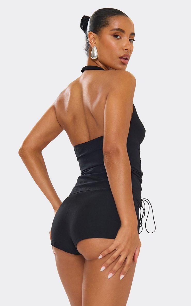 Mid Rise Ruched Detail Hot Pants In Black