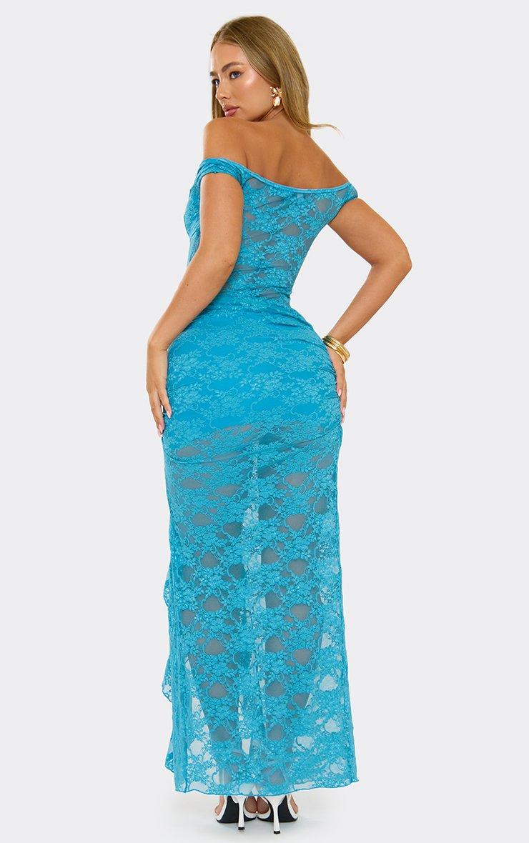 Low Rise Ruched Side Detail Maxi Skirt In Baby Blue Lace