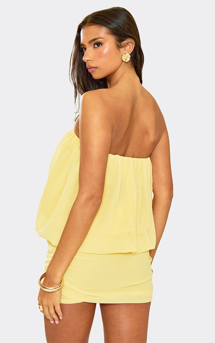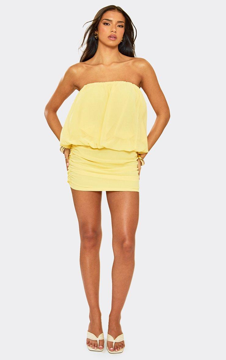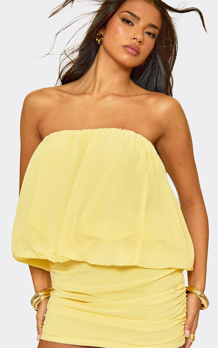 Bandeau Puffball Top In Ruched Mini Skirt Co-Ord Set In Lemon