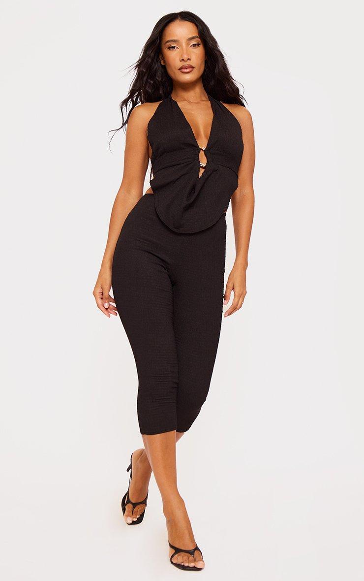 Low Rise Capri Detail Leggings In Black