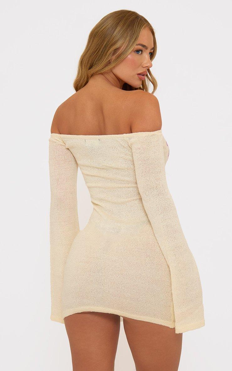 Bardot Flared Sleeve Starfish Detail Mini Dress In Yellow Knit