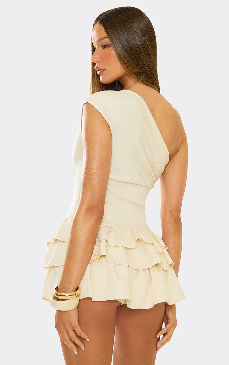One Shoulder Asymmetric Layered Frill Lace Up Detail Playsuit In Cream