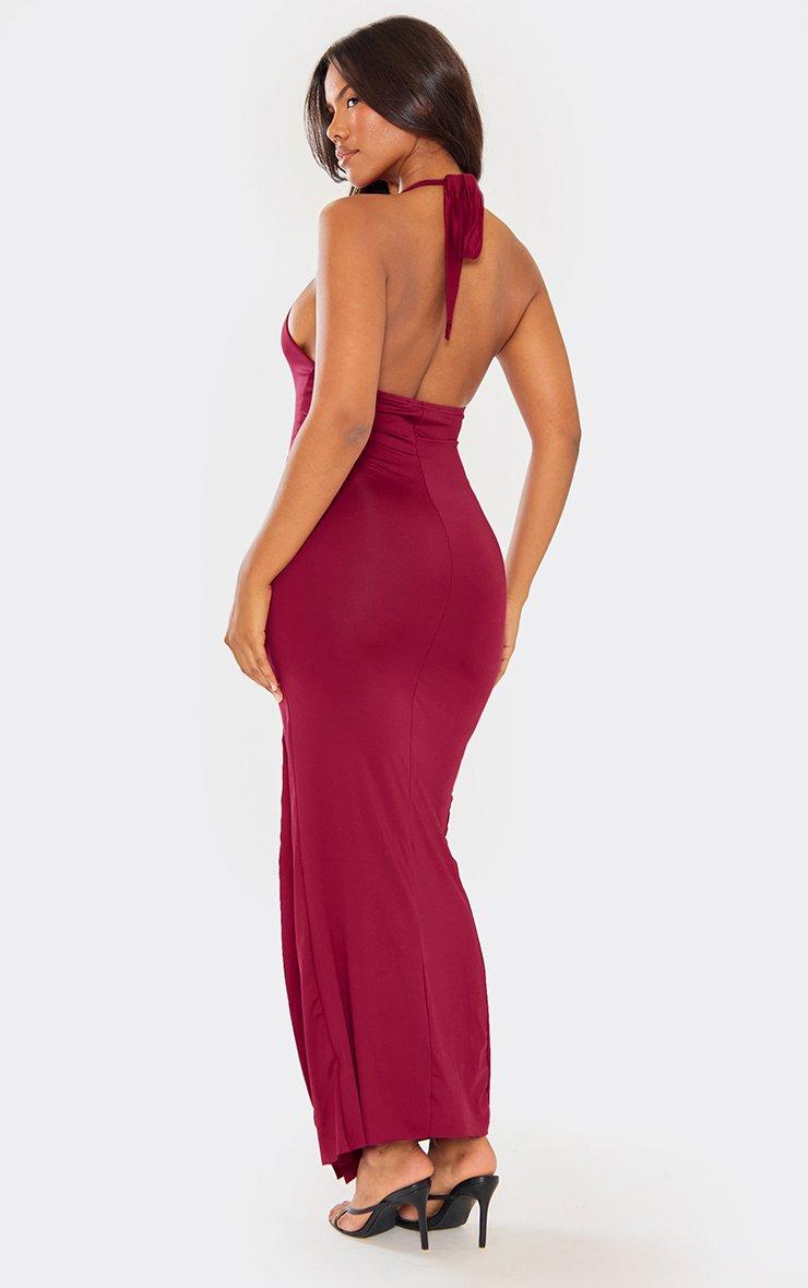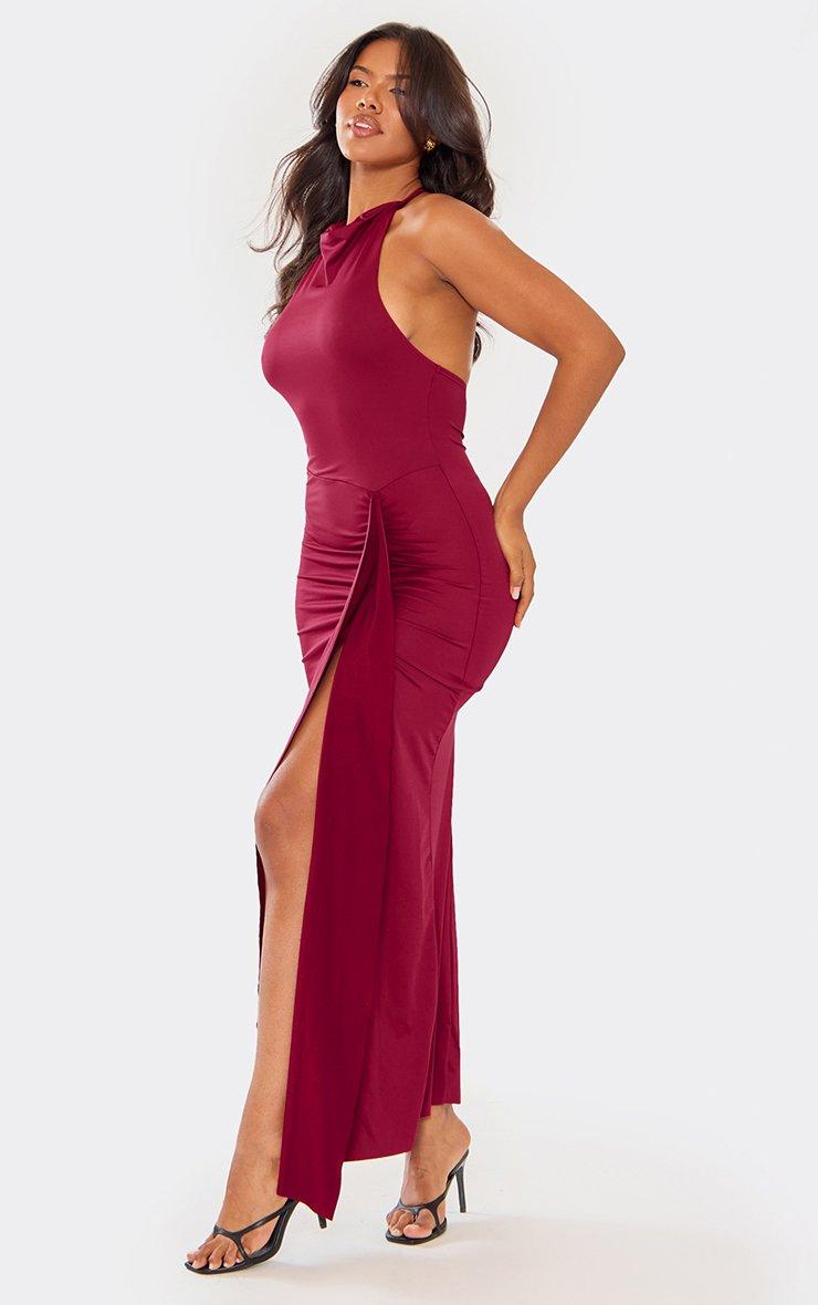 Racer Neck Cowl Drape Split Leg Detail Maxi Dress In Burgundy