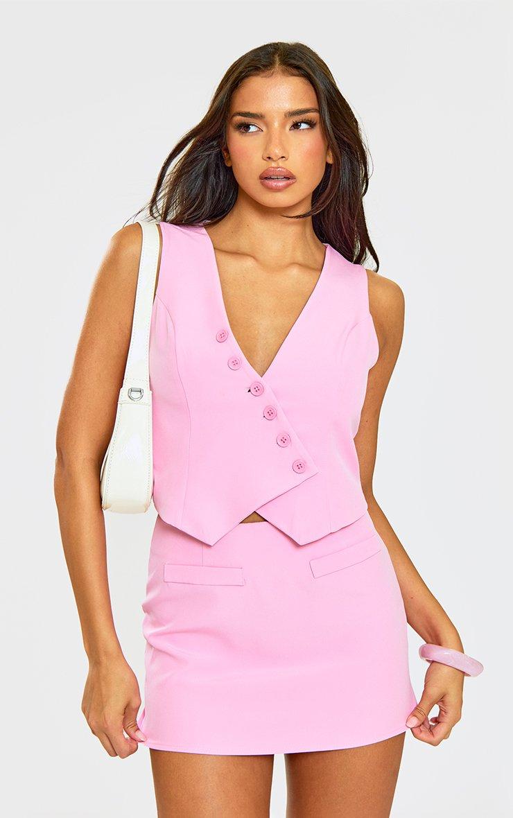Mid Rise Tailored Fitted Mini Skirt In Pink