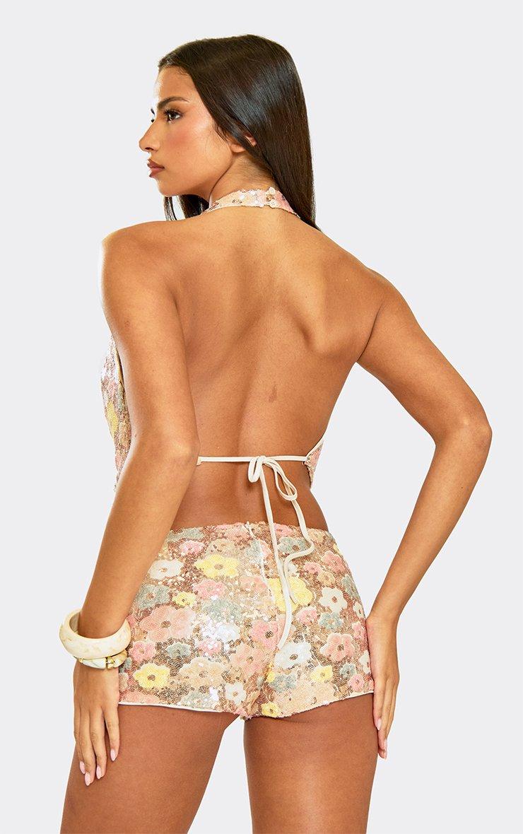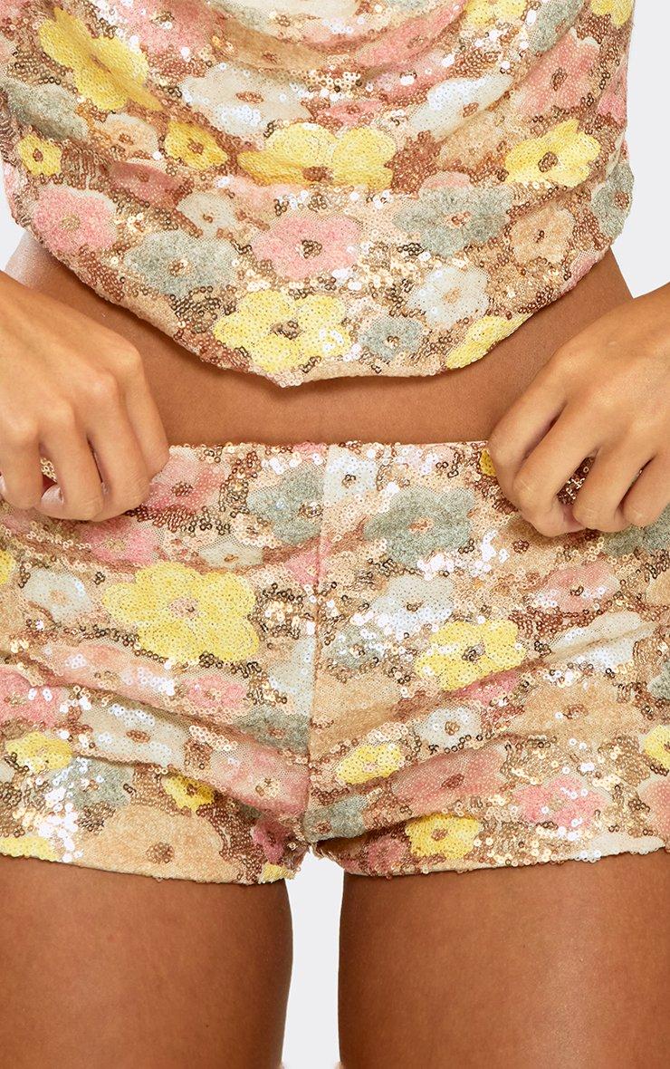 Low Rise Elastic Waist Hot Pants In Gold Sequin