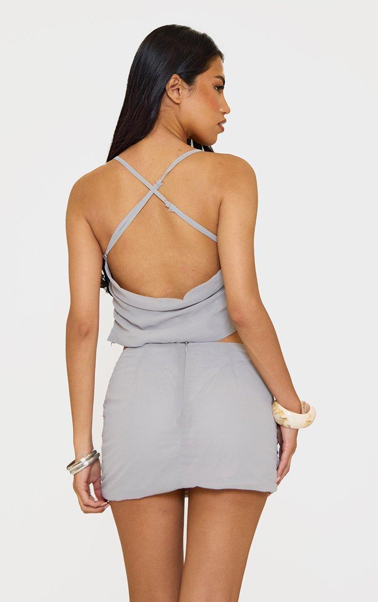 High Waist Ruched Detail Mini Skirt In Icy Grey Parachute