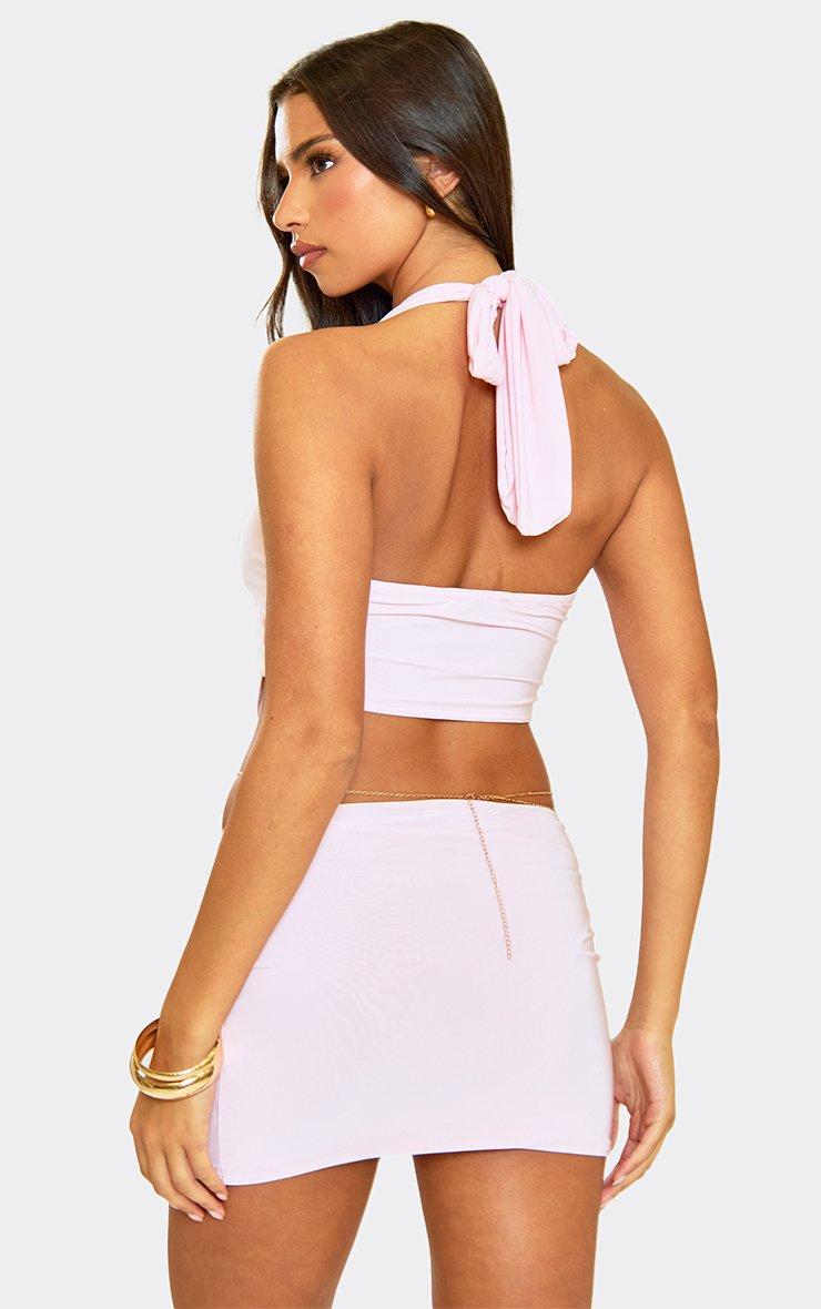 plunge halterneck trim detail top in baby pink