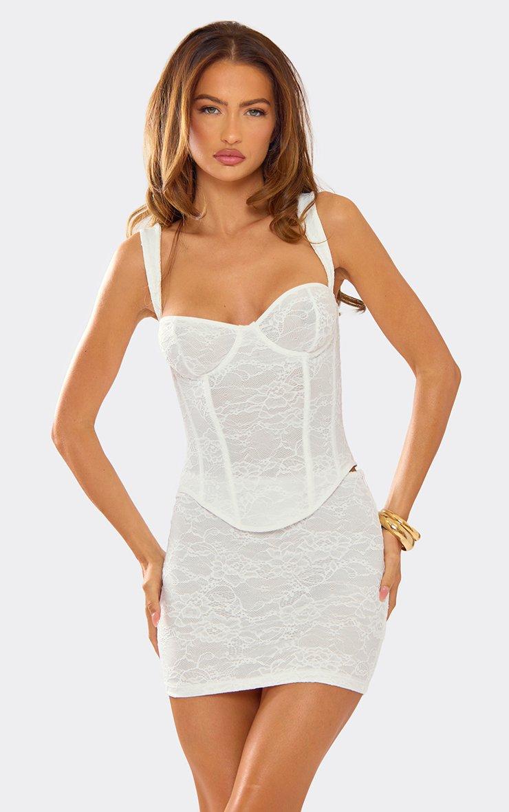 Bandeau Ruched Lace Up Detail Corset Top In White