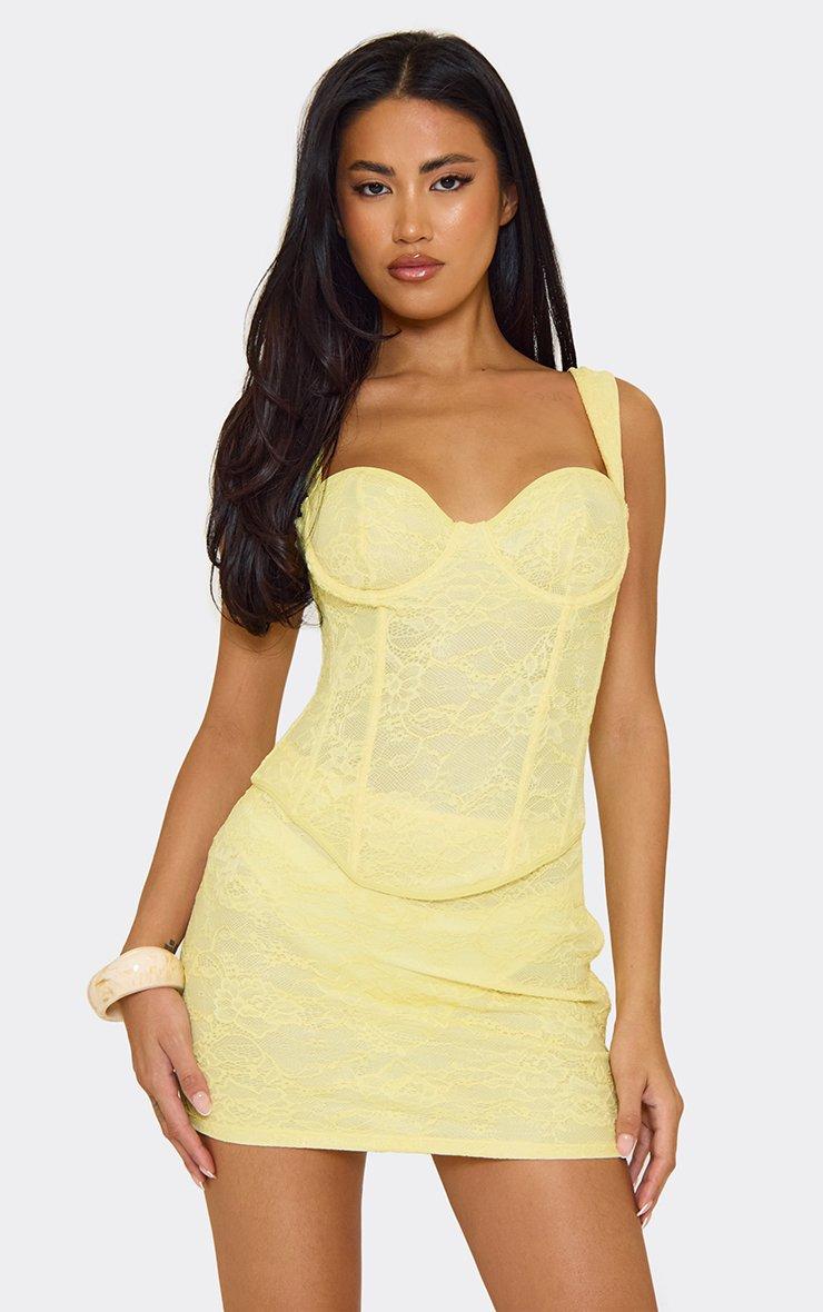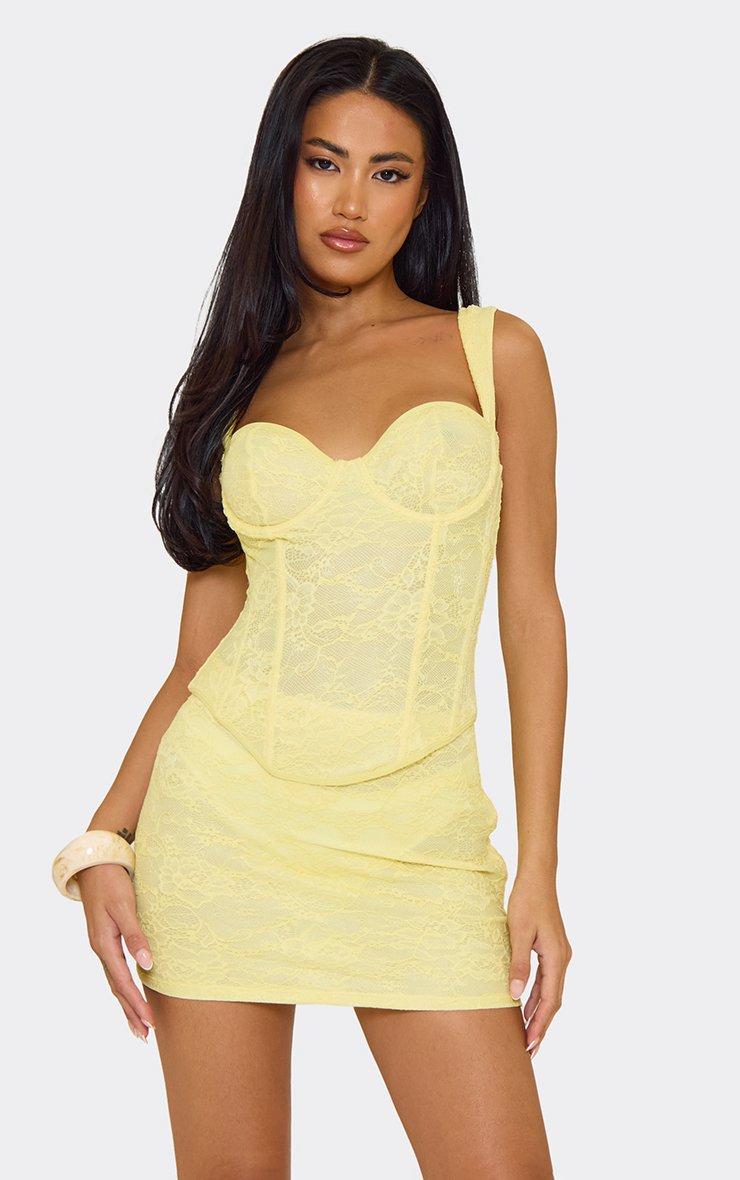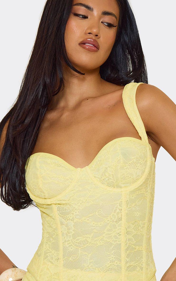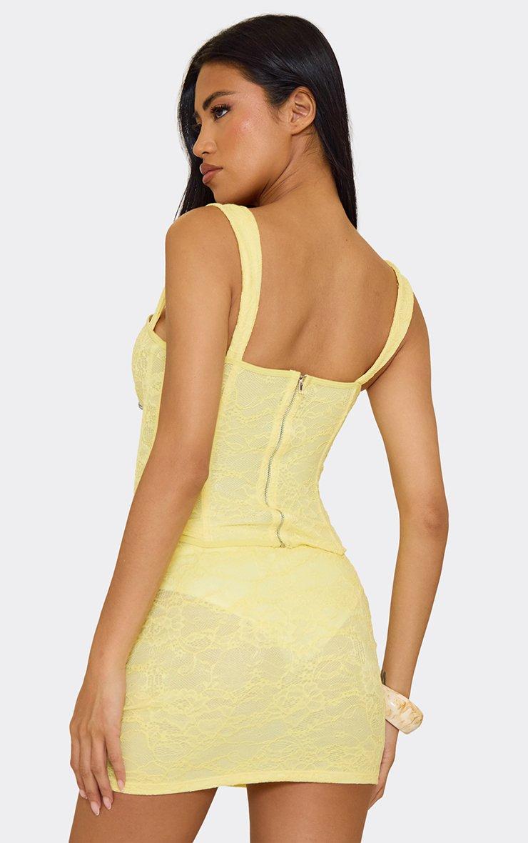 Sweetheart Neck Corset Detail Top In Yellow Lace