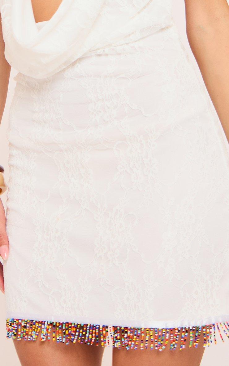 Extreme Cowl Neck Beaded Trim Mini Dress In White Lace