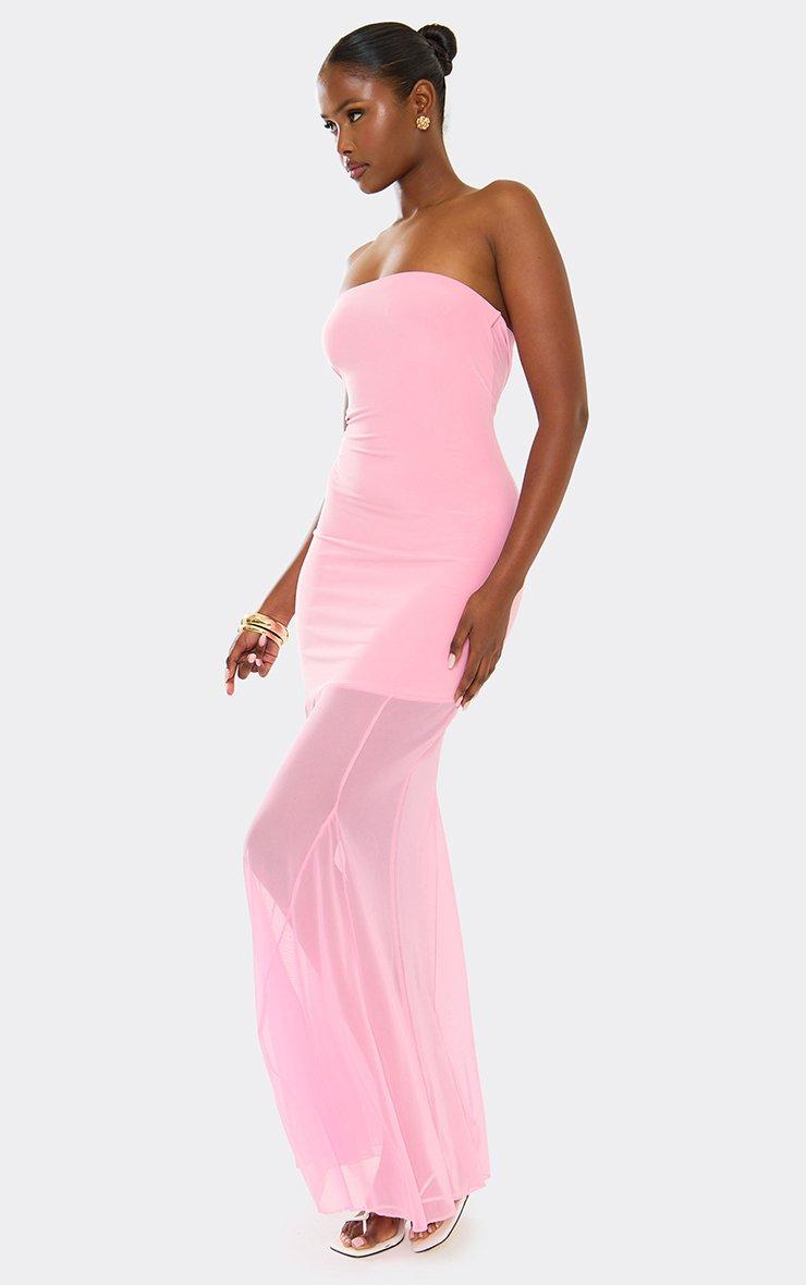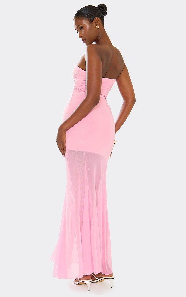 Bandeau Godet Hem Detail Maxi Dress In Pink