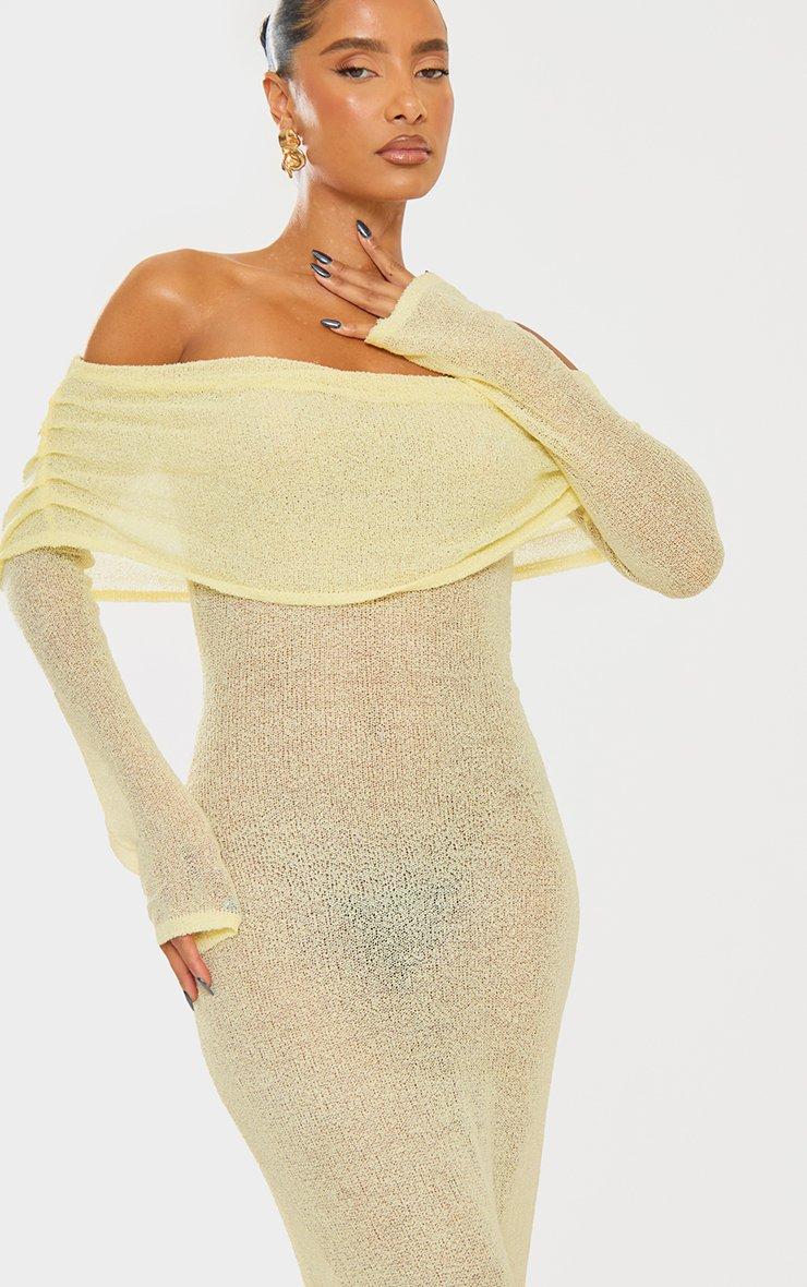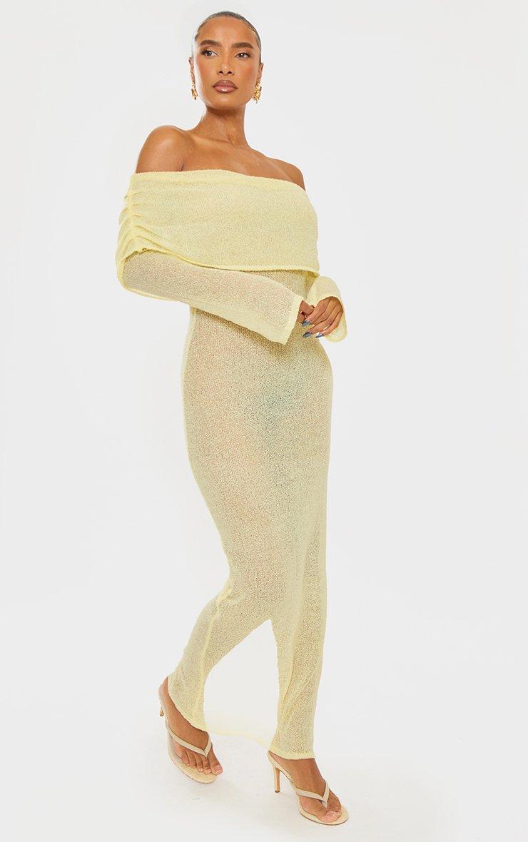 Bardot Fold Over Long Sleeve Beach Maxi Dress In Yellow