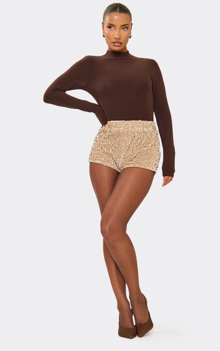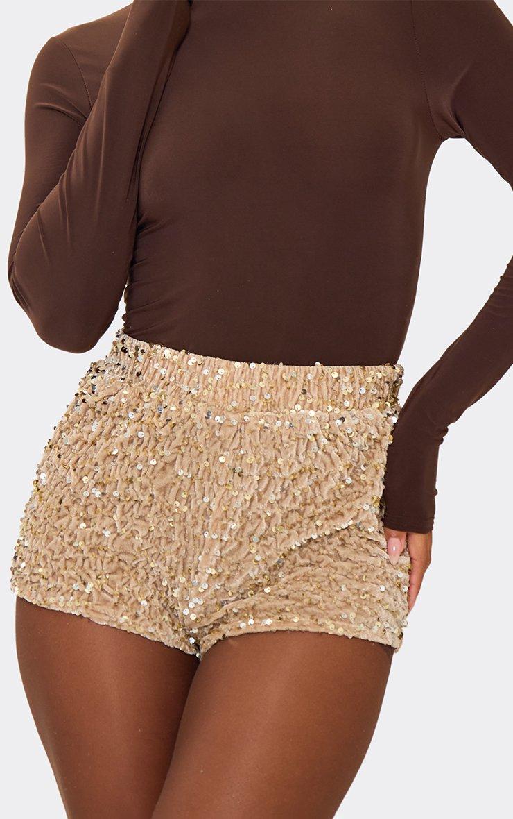 Elastic Waist Micro Shorts In Gold Velvet Sequin