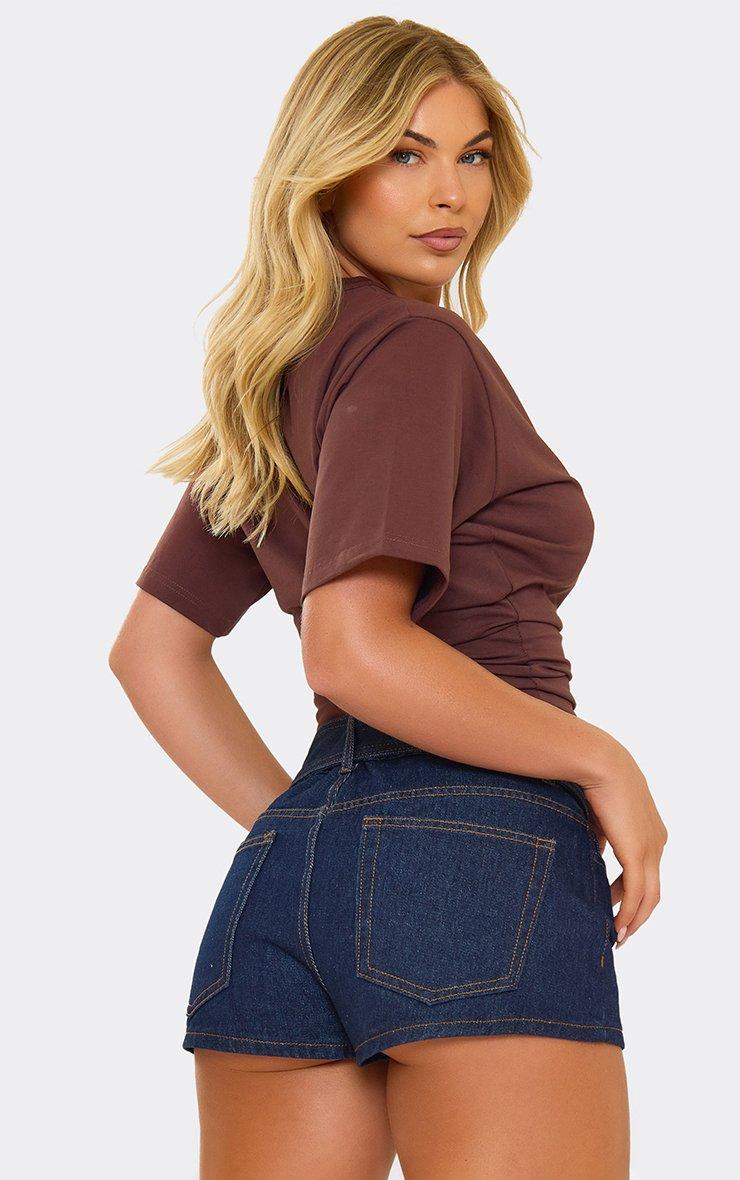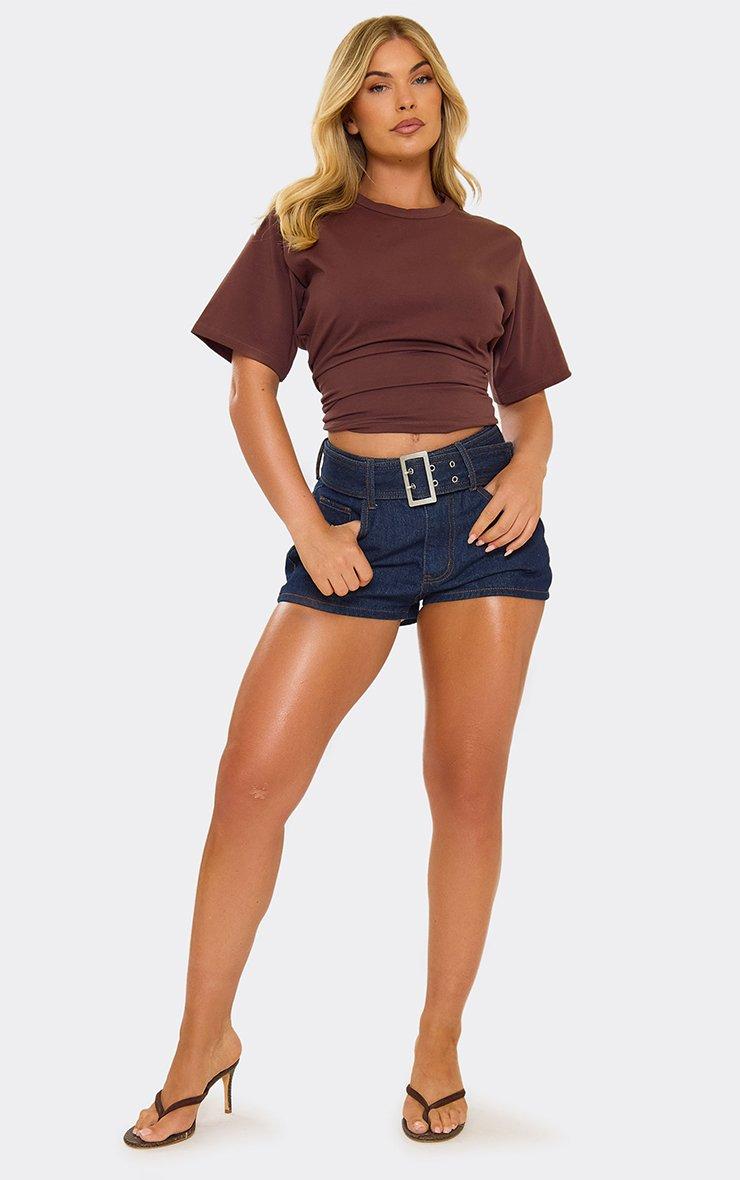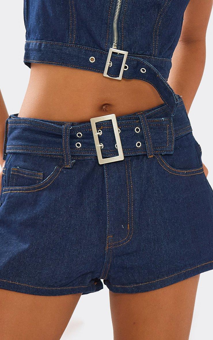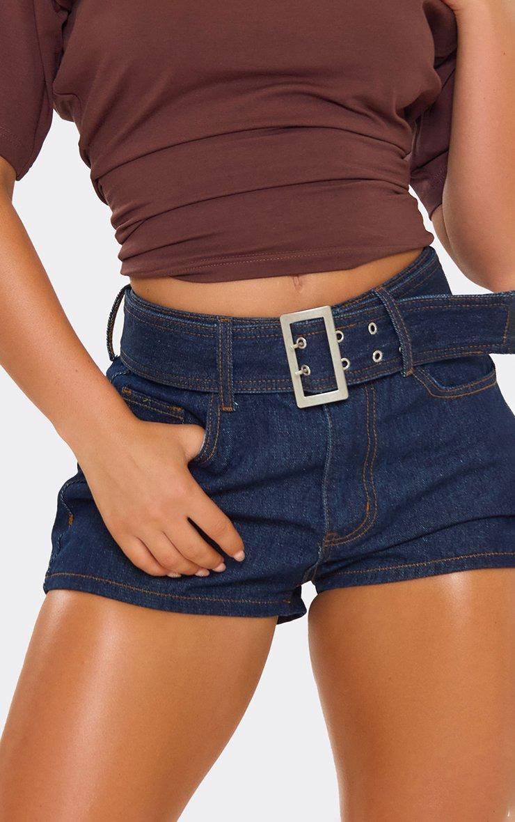 Mid Rise Belted Micro Shorts In Indigo Blue Denim