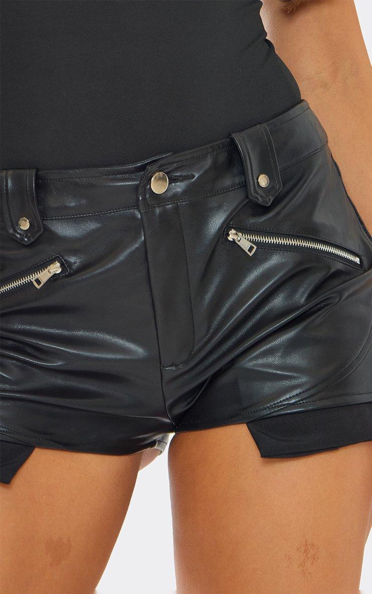 low rise zip pocket detail shorts in black faux leather