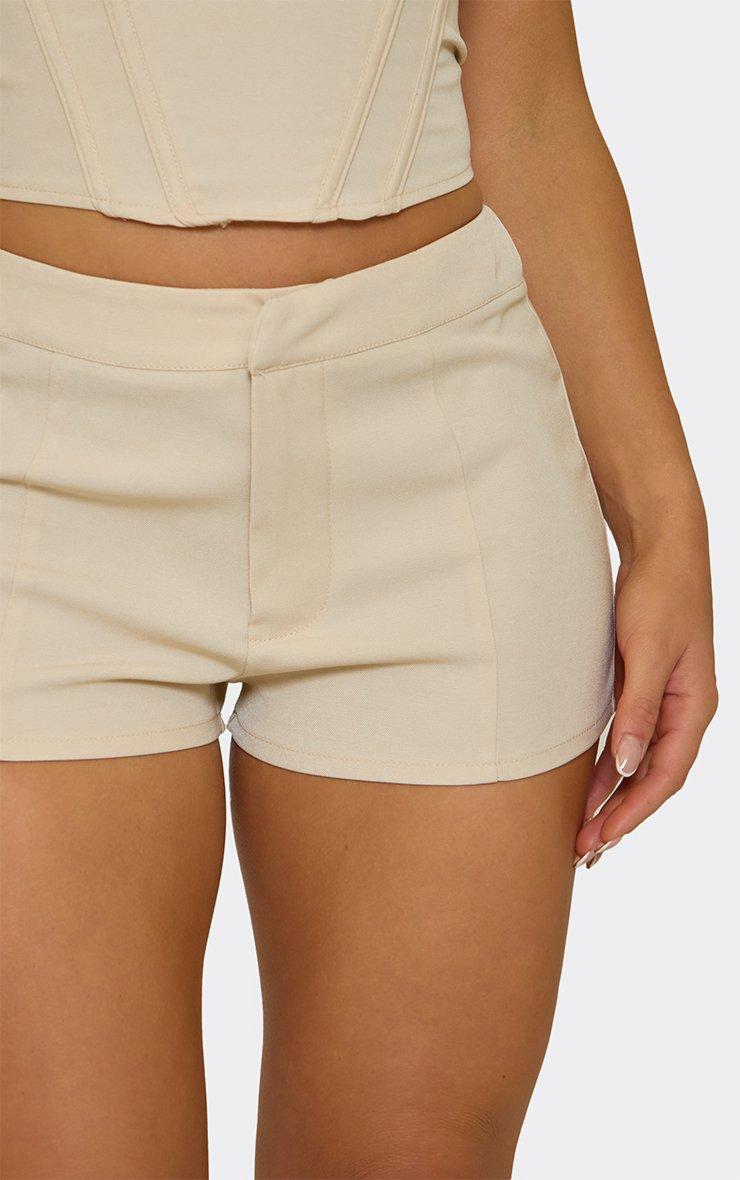 Mid Rise Pocket Detail Mini Shorts In Stone