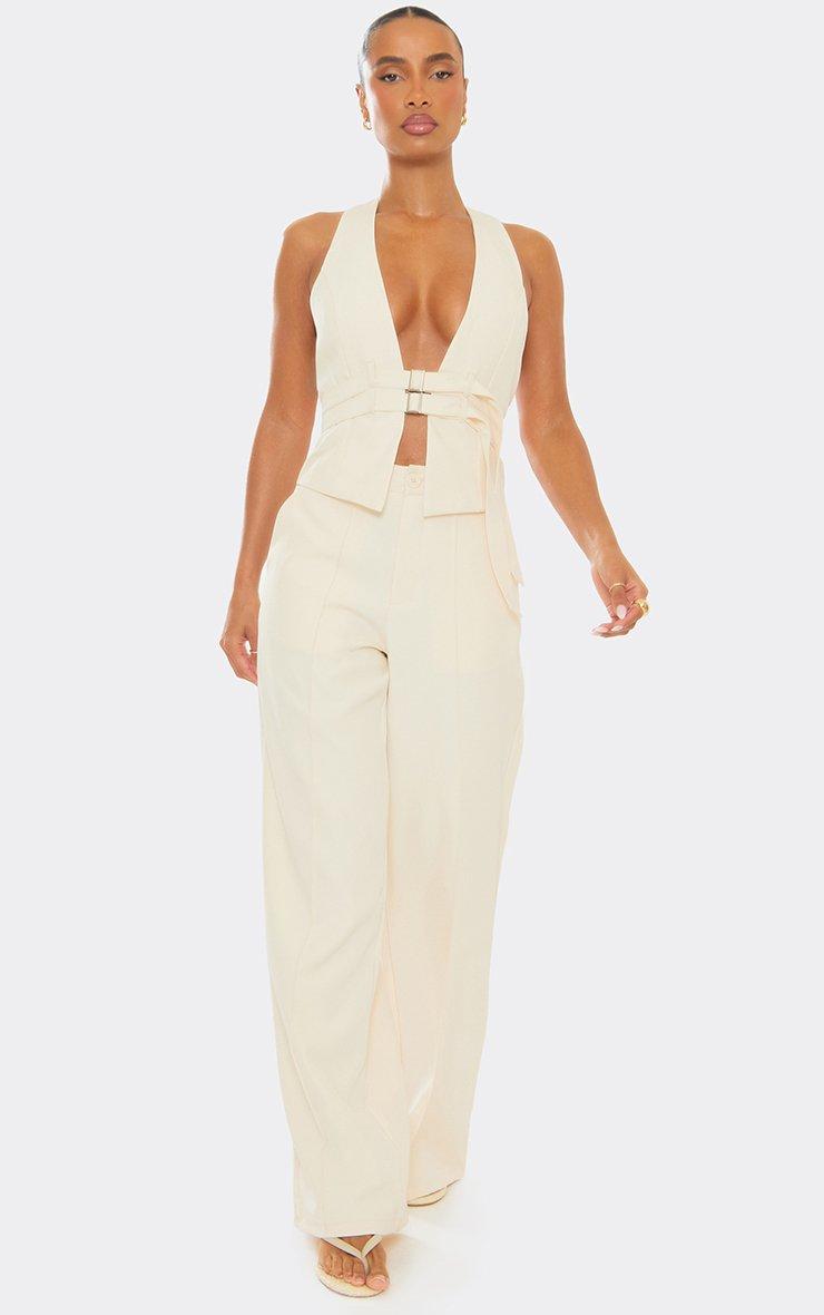 Sleeveless Button Front Detail Fitted Waistcoat In Stone