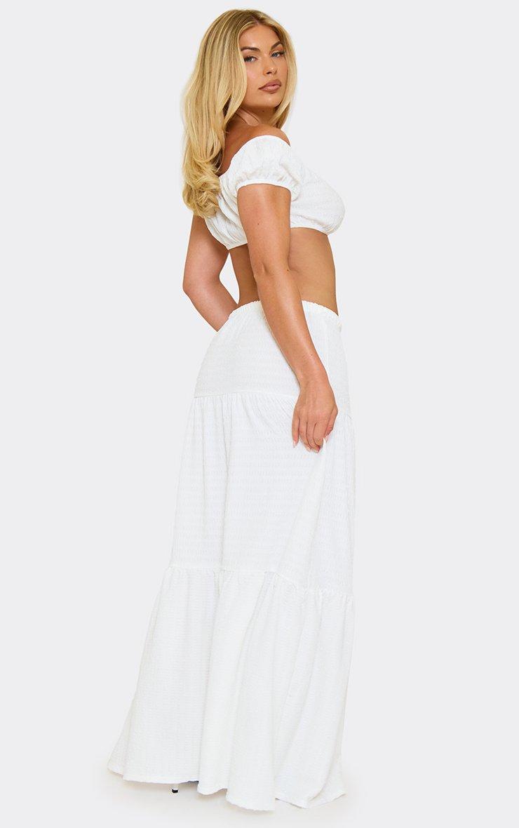mid rise tiered maxi skirt in white textured
