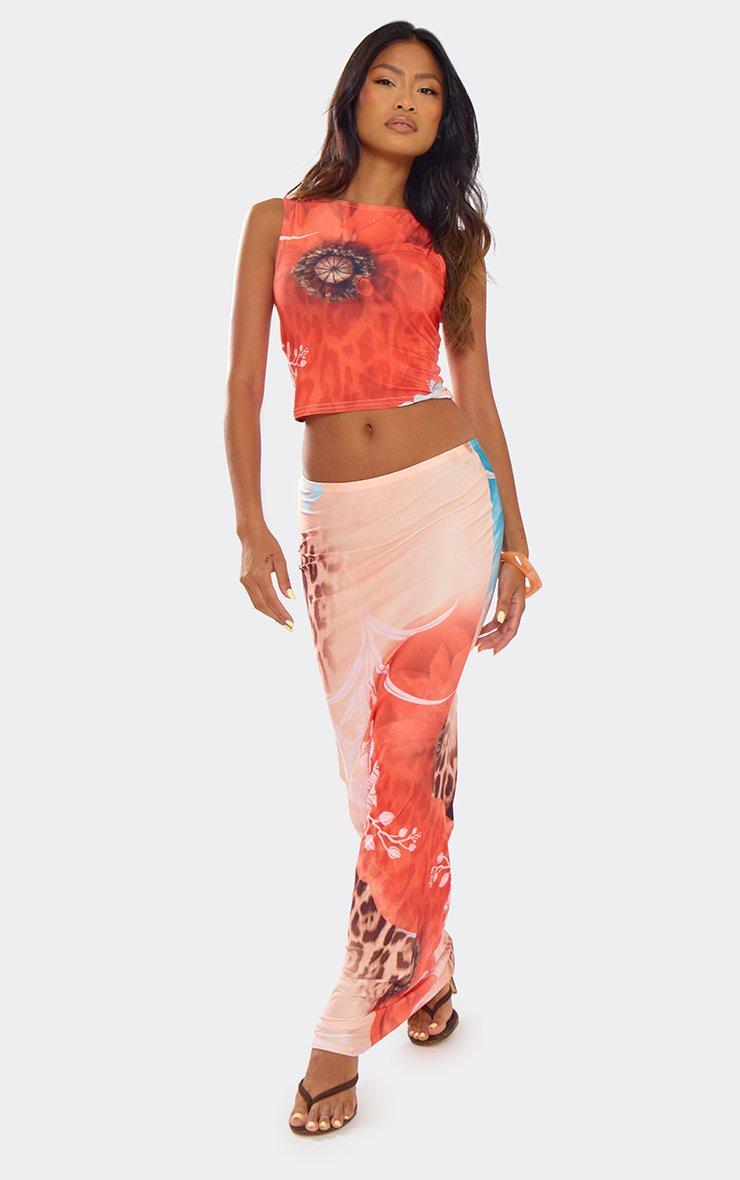 Cowl Halterneck Crop Top In Multi Leopard Print