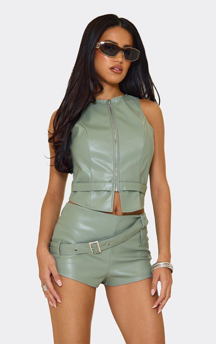 Plunge Choker Ruched Detail Crop Top In Sage Green Lace