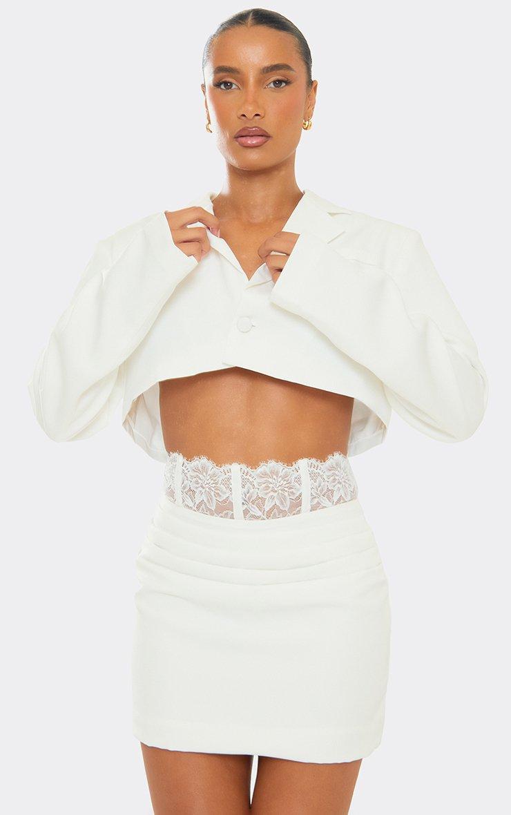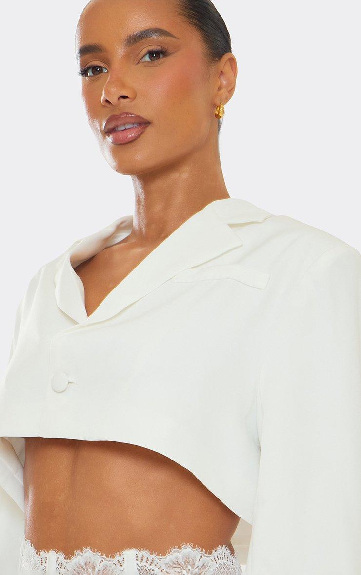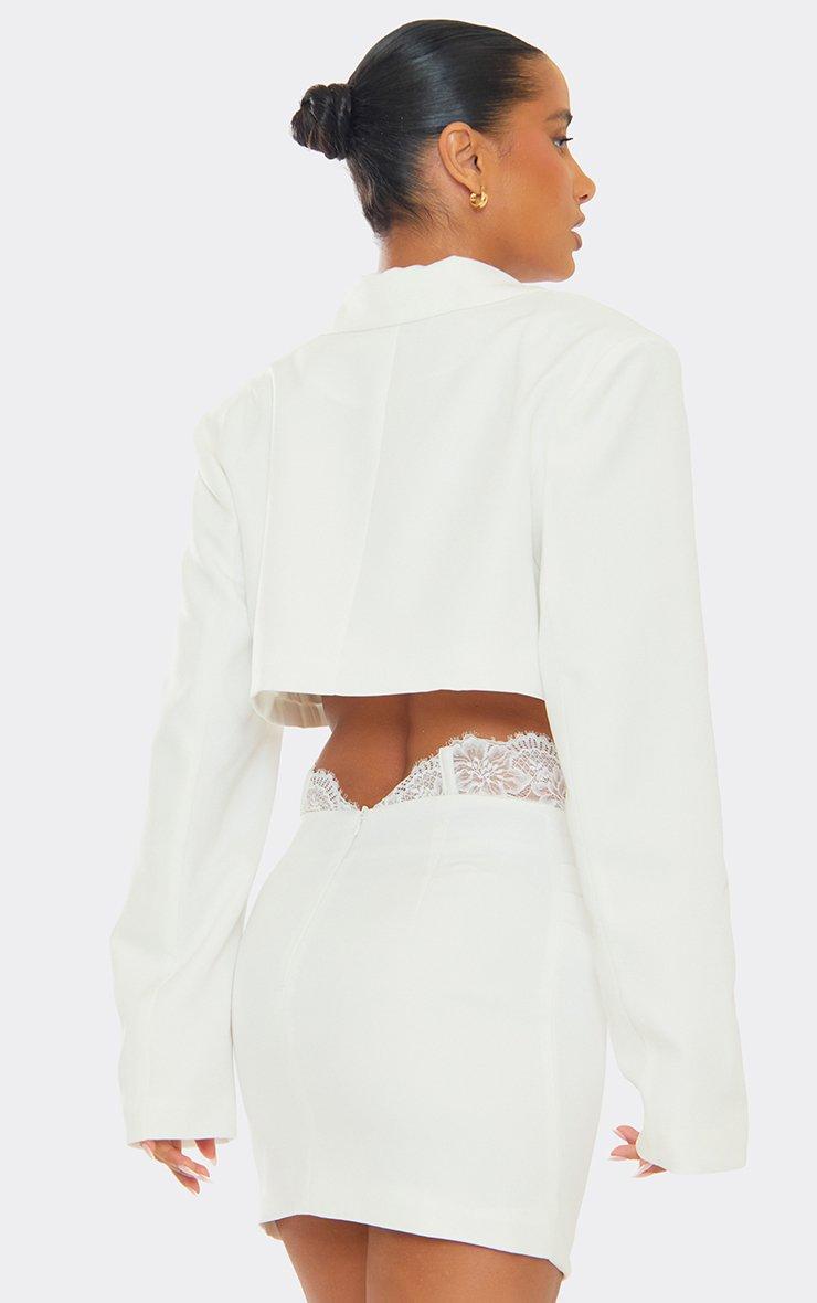 Short Sleeve Button Detail Cropped Tailored Blazer In White